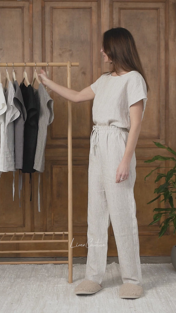 Sie können entweder nur die Pyjamahose oder das Leinenoberteil bestellen oder das komplette Leinenpyjama-Set, das beide Produkte enthält.