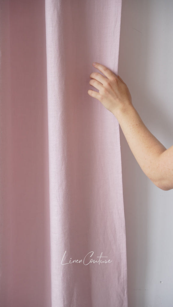 Wunderschöne, hellrosa Leinen-Gardinen aus zertifiziertem europäischem Leinen. Die einfarbigen Gardinen mit Schlaufenaufhängung passen perfekt in Ihr Zuhause. Leinen-Gardinen sind halbtransparent und lassen im geschlossenen Zustand angenehmes Licht herein.