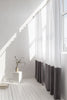Moderne Leinen-Vorhänge in Grau und Schneeweiß werden aus zertifiziertem europäischem Leinen gefertigt. Elegantes Design, das Ihrem Zimmer eine besondere Note verleiht. Die Leinen-Vorhänge sind halbtransparent und lassen im geschlossenen Zustand angenehmes Licht herein. Dank des praktischen Kettbandes lassen sie sich einfach aufhängen.