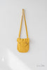 Schultertasche aus honigfarbenem Leinen mit Kokosnussknöpfen und verstellbarem Riemen